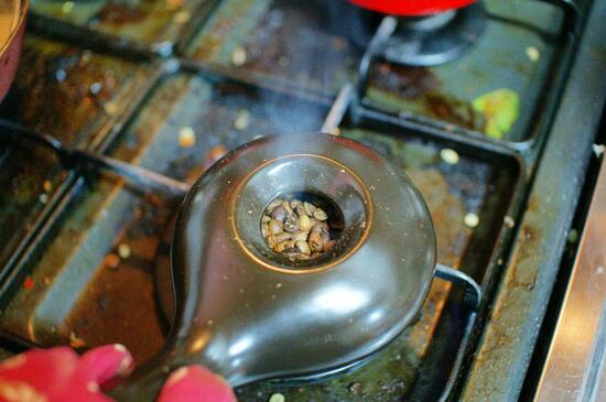 보이는 홀에 생두를 투입을하고 수망로스팅을할때처럼 흔들어주면