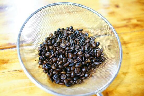 위 사진에서 보이는 원두는 색이 일정하게 로스팅이 되지않았다(로스팅을할때 골고루 열을 받을수있도록 잘 흔들어 주는것이 좋다)